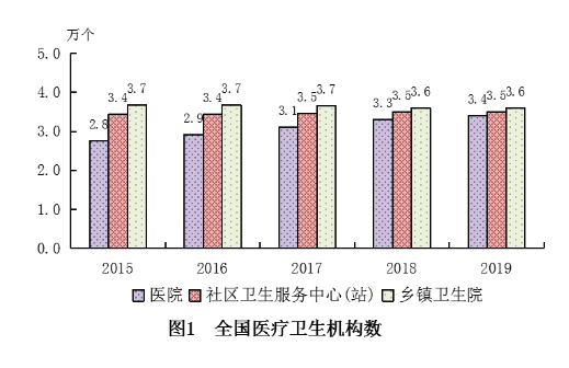 (一)醫(yī)療衛(wèi)生機構(gòu)總數(shù)。2019年末,全國醫(yī)療衛(wèi)生機構(gòu)總數(shù)達1007545個,比上年增加10112個。其中:醫(yī)院34354個,基層醫(yī)療衛(wèi)生機構(gòu)954390個,專業(yè)公共衛(wèi)生機構(gòu)15924個。與上年相比,醫(yī)院增加1345個,基層醫(yī)療衛(wèi)生機構(gòu)增加10751個(見表1)。